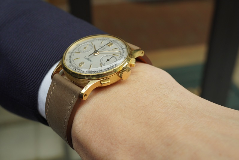 久方ぶりのRef.130です。ヴィンテージパテックのクロノグラフと言えばやはりこれでしょう。デザインはRef.130の中でもはもっともベーシックな12・6のアラビアインデックスですが、今回の個体は希少な”LORTSchER(ロルチャー)”とのダブルネームモデル。ロルチャーはベルギーのブリュッセルにあった時計小売店ですが、比較的良く見かけるギュブランやベイヤー等のWネームと比べるとかなり数は少なく、私も商品として手にするのは初めてです。