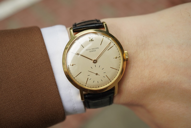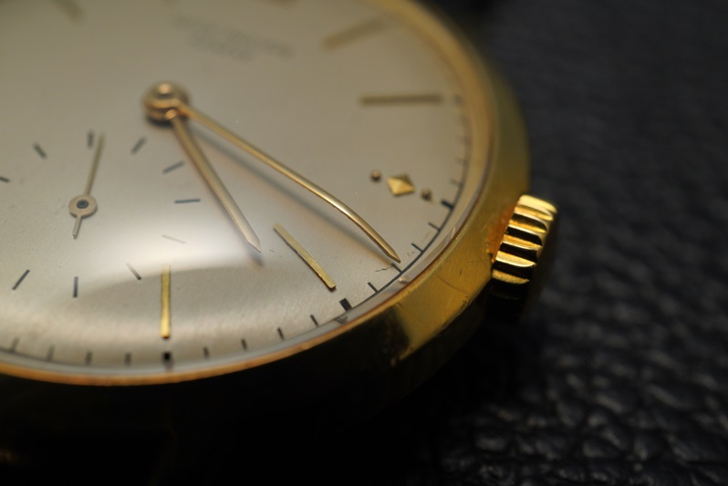 かなりのビッグケースではありますが、ダイヤルは均整が取れており間延び感は一切無し。非常にバランスの良い時計だと思います。ビッグサイズのヴィンテージパテックをお探しであれば是非お試し頂きたい一本ですね。