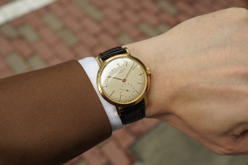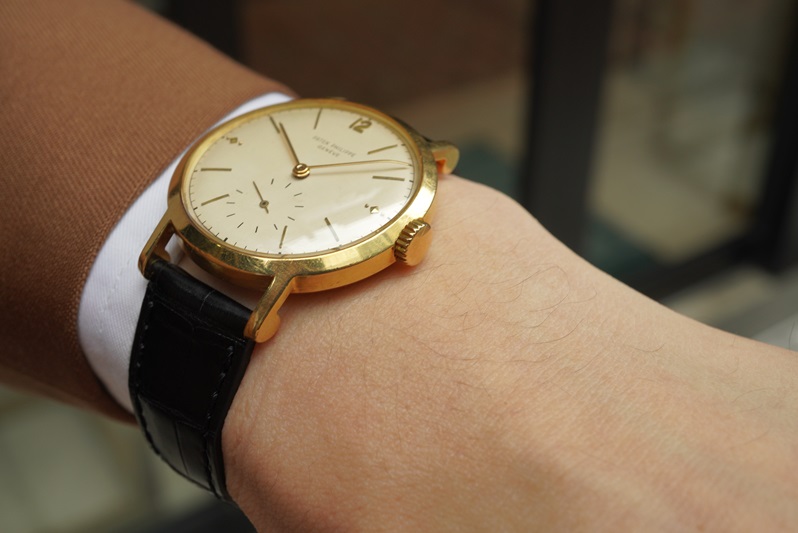 ケース径は約36.5mm。ヴィンテージパテックの中ではかなりのビッグサイズ。自分の腕にはやや大ぶりですかね。もう一回り腕周りががっしりしている人の方がより似合いそう。