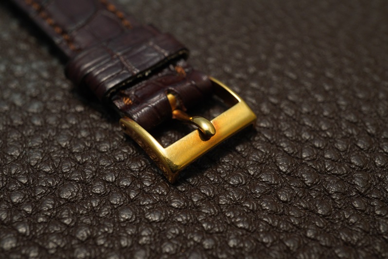 バックルはパテック純正の18KYG製尾錠が付属。フラットタイプの尾錠は最近では中々に希少です。