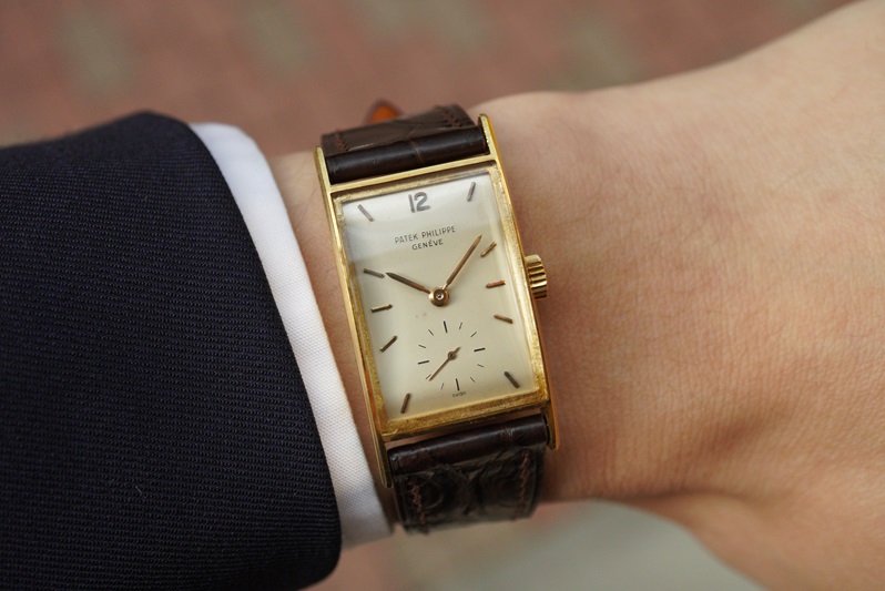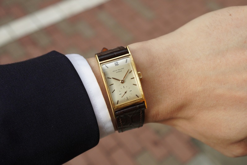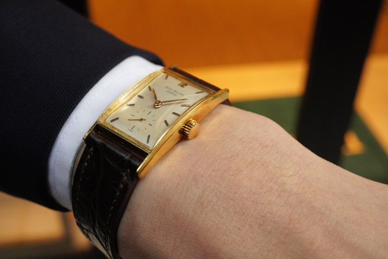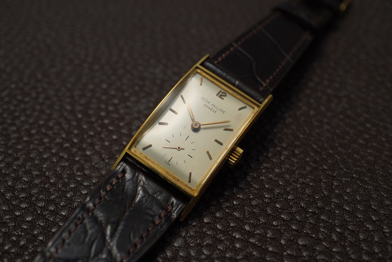 Ref.2554もRef.2554/1もなかなか出会いの少ないリファレンスでして、私も今回初めて手にします。ヴィンテージパテックのレクタンギュラーはどのリファレンスもご多分に漏れずダイヤルのダメージが多いものが多く、中々満足のいく個体との出会いが望めないのが辛いところ。今回のRef.2554/1は希少性もダイヤルコンデションの良さも共に高く、角型好きの方であれば見逃せない一本ではないでしょうか。