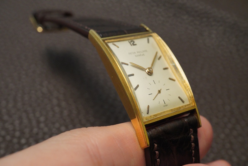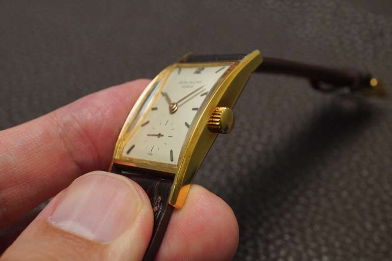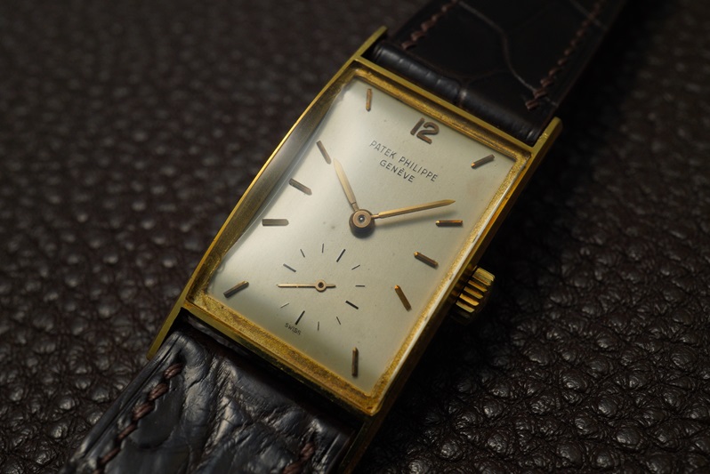 パテックのRef.2554と言えば”マンタレイ”というサイドにあるヒレのようなシェイプが特徴的な50年代のレクタンギュラーウォッチですが、今回の個体はRef.2554の派生モデルでヒレ無しのRef.2554/1です。