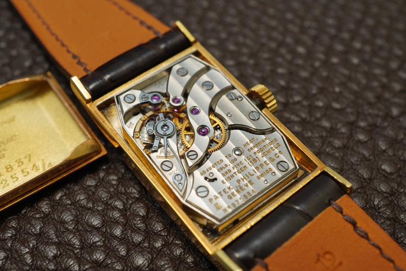 ムーブメントはパテック製の角型手巻の銘機Cal.9-90を搭載。ブリッジの面取りが美しいですねえ!コンデションも素晴らしく、非常に美しい状態を保っています。