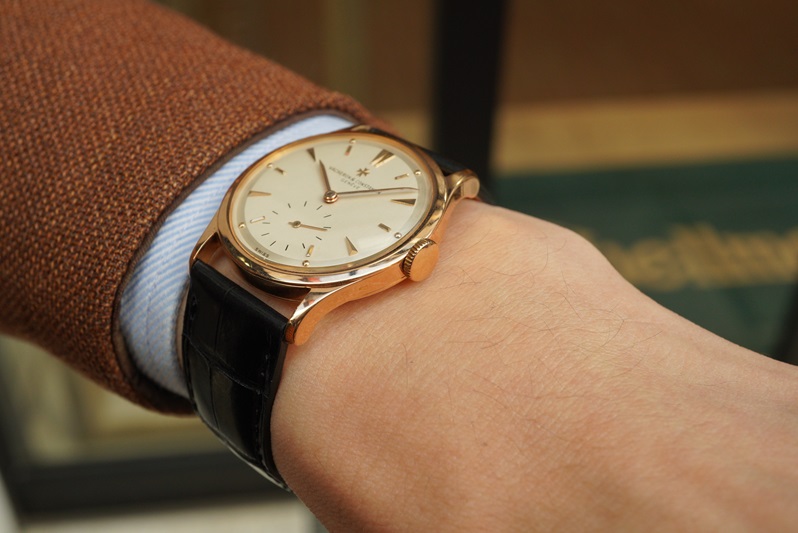 いや待っていましたよ。私がヴァシュロンの中で最も好きなリファレンスがRef.4073です。とにかくケースのデザインとサイズ感がパーフェクト。私が理想とするラウンドのドレスウォッチを体現したかのようなバランスなんですね。ケース径は約33mm。デザイン自体はパテックのRef.96等のカラトラバに限り無く近いデザインですが、僅かにテーパーを掛けたベゼルがよりドレスウォッチらしい佇まいを生み出します。