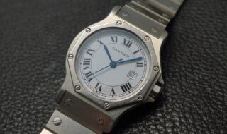 文字盤には殆ど傷は無く中々良いコンディション。ホワイトゴールドと鮮やかなブルーの組み合わせが一際目を引きます。