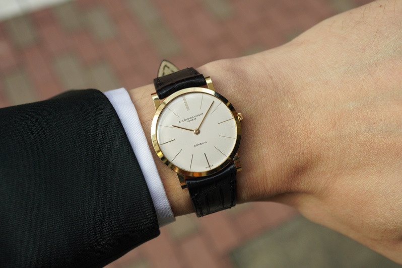 いつ見ても思いますが、やはり2針の薄型ドレスウォッチはオーデマが美しいですね。針、文字盤、ケースに至るまで、どうすれば美しいドレスウォッチになるのかを他ブランド以上に熟知している感があります。