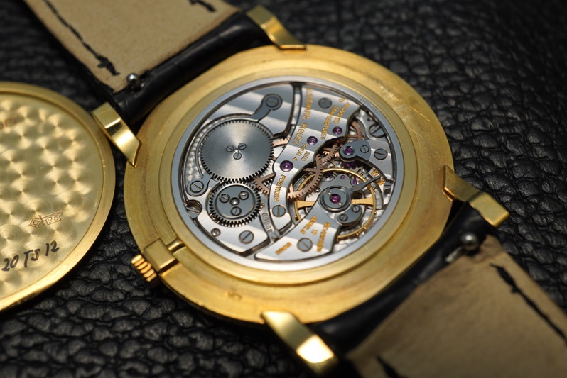 ムーブメントはやはりこれ。ジャガー・ルクルト製の高級薄型手巻Cal.2003を搭載。超ロングセラーの銘機中の銘機。