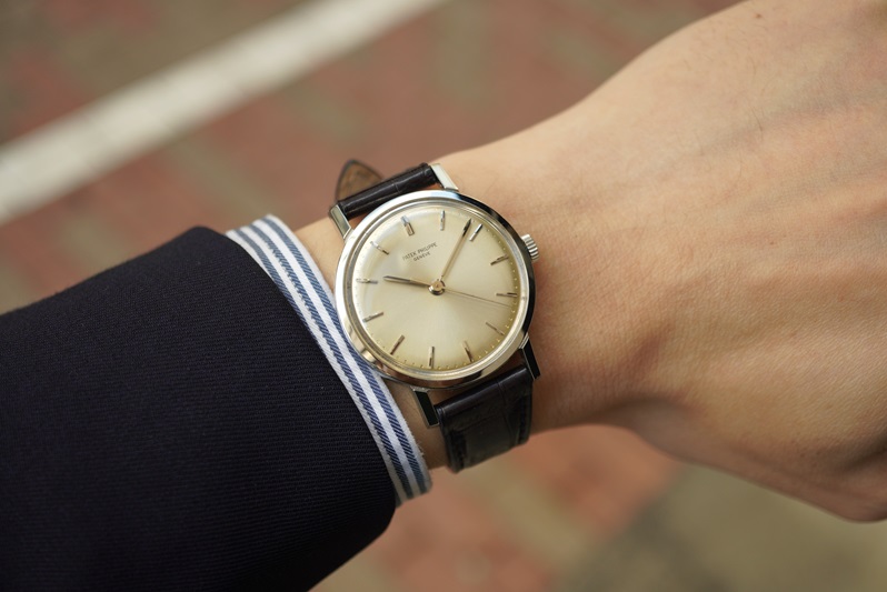 “ステンレススチールケース”、”手巻き”、”ノンデイトの3針”というヴィンテージパテックの中でも極めて使い勝手の良いデイリーユースに最適な一本です。