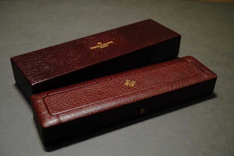 後年のパテック純正BOXと外箱も付属します(内部は加水分解によるひび割れ有り)。