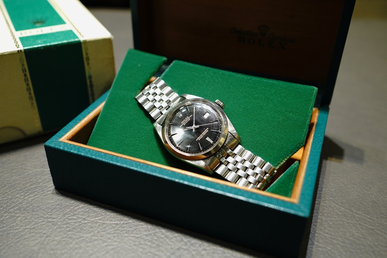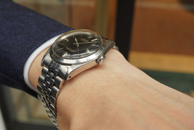 非常に希少なロレックス Ref.1600 デイトジャスト ブラックダイヤル、当店にお越しの際は是非お手に取ってお楽しみください。