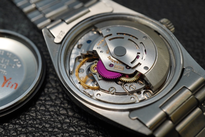 ロレックス製自動巻きムーブCal.1570を搭載。ハック機能付きの後期型。ヴィンテージウォッチが初めてでどんなムーブメントなら安心か分からないというビギナーの方、これ入ってるロレックスならどれ選んでも基本OKですよ。メンテンナンスもしやすい、間違いなく永く使える一本になります。