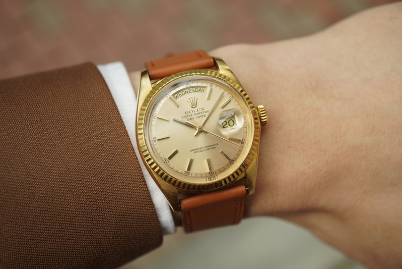 昨今のドレスウォッチの機運の高まりとともに、市場でも年々その存在感を増しているロレックスのデイデイト。言わずと知れたロレックスの最上位モデルであることを加味せずとも、そのデザインの完成度と、時計そのものが持つ存在感には多くの方が惹きつけられることでしょう。