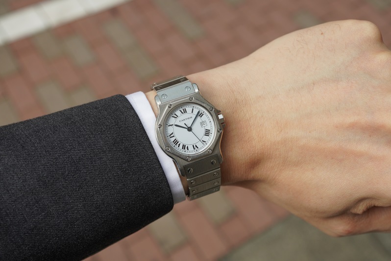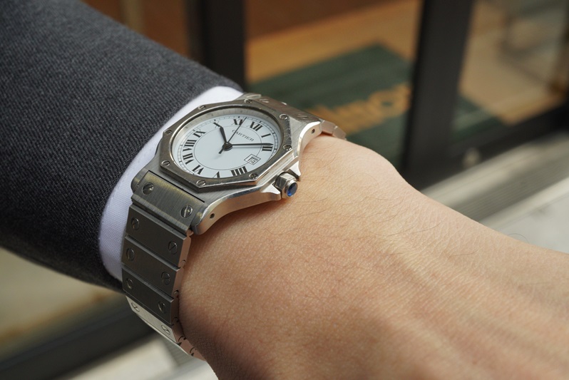 久しぶりのカルティエの新着。サントス・オクタゴンのオールステンモデルのご紹介。