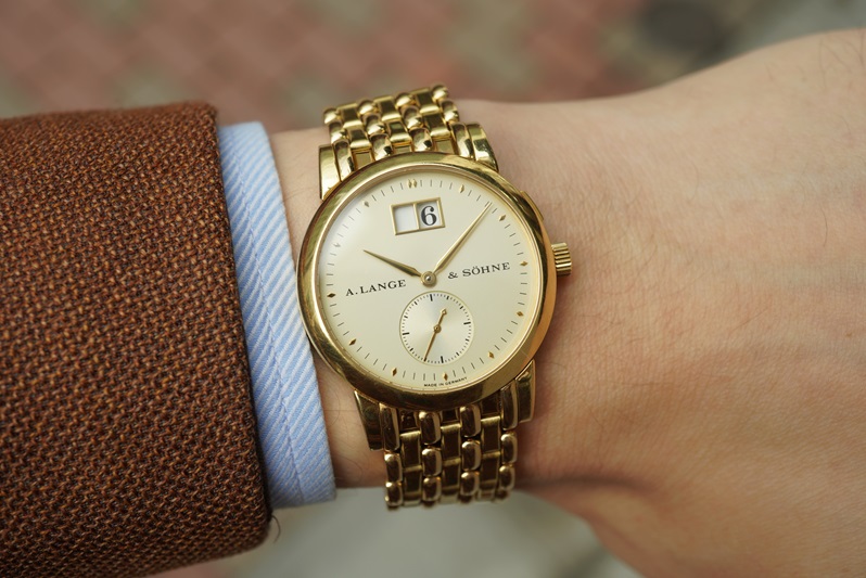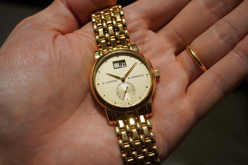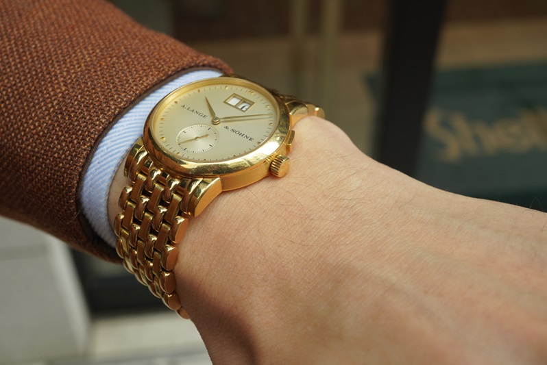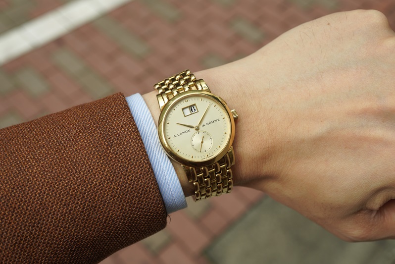 パテックとは異なる、ランゲならではの佇まい。かつて自分が上がり時計として目標にしていたブランドなのですが、パテックを手にした今でさえ強い憧れを持っています。