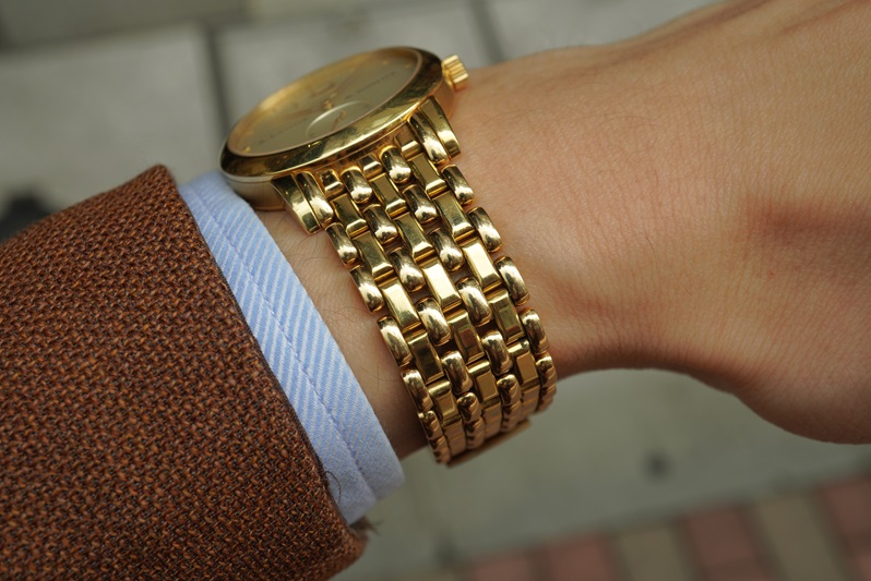 若い頃はゴールドブレスの時計を着けるなんて想像もしておりませんでしたが、40を過ぎた今はむしろ無性に惹かれます。