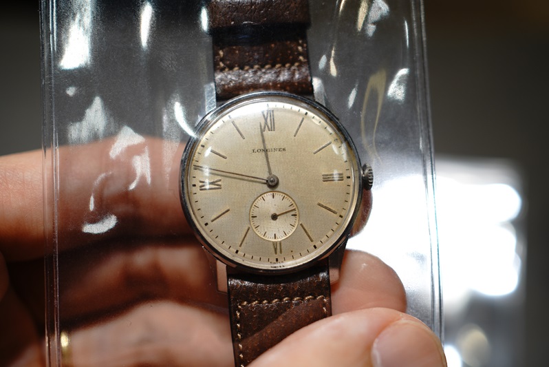 このクッションケースのロンジンは珍しいシルバー素材。シルバー独特の風合いが良い味出てます。セクターダイヤルなのもポイント高いですね。