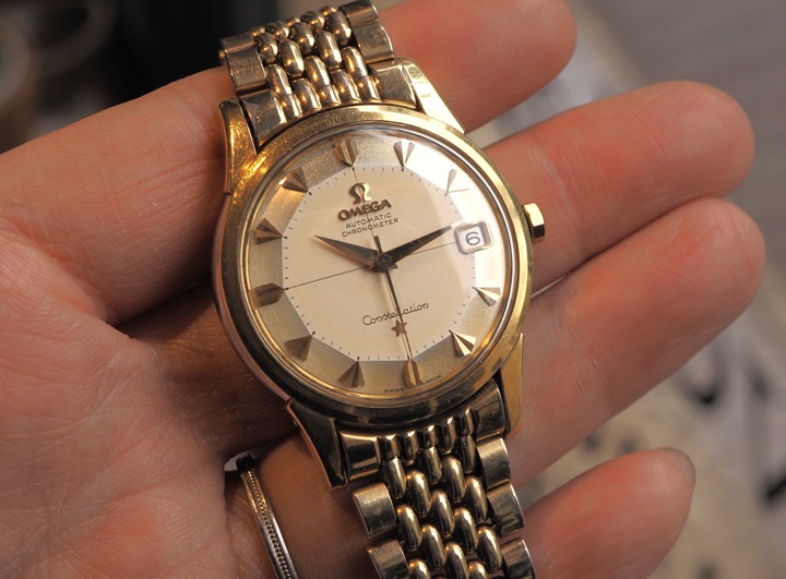 その他であれば、オメガのシーマスターとコンステレーションがそれぞれ純正ブレスレット付属で在庫が揃っています。私も久方ぶりに出会った金張りのコンステレーションは、剥げが無い良好なコンディションです。個人的には同じ金張りの純正ブレスレット付属も嬉しい点で、統一感が素晴らしく、昨今のゴールドジュエリーのトレンドとも相性が良さそうです。